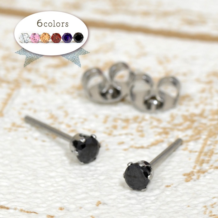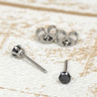 【バラ売り/1個】 ピアス サージカルステンレス キュービックジルコニアのスタンダードなピアス 石:3.0mm 黒 ブラック|医療用ステンレス アクセサリー レディース メンズ