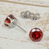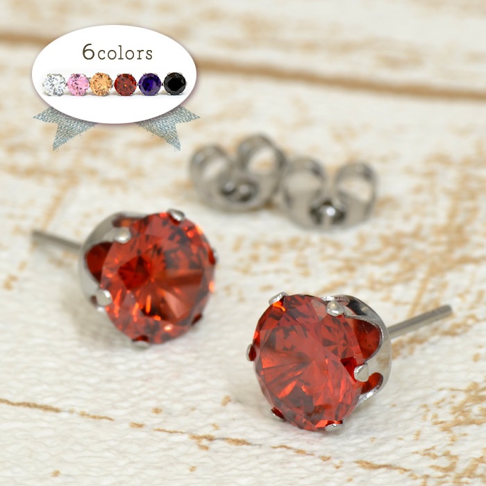 【バラ売り/1個】 ピアス サージカルステンレス キュービックジルコニアのスタンダードなピアス 石:8.0mm 赤 レッド|医療用ステンレス アクセサリー レディース メンズ