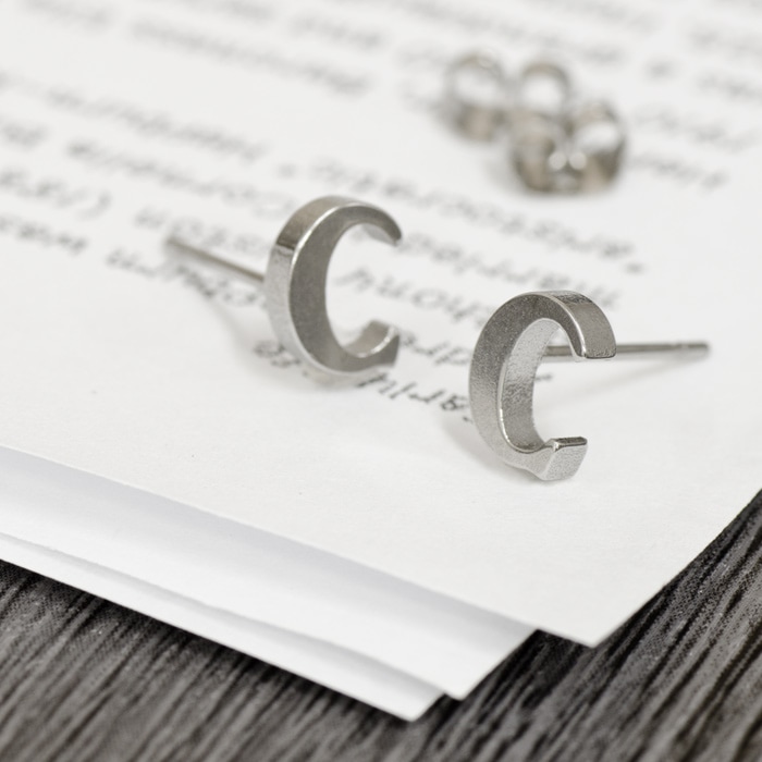 ステンレス > ピアス > スタッドタイプ > 【バラ売り/1個】 ピアス サージカルステンレス C イニシャルのピアス アルファベット 文字|医療用ステンレス アクセサリー レディース メンズ