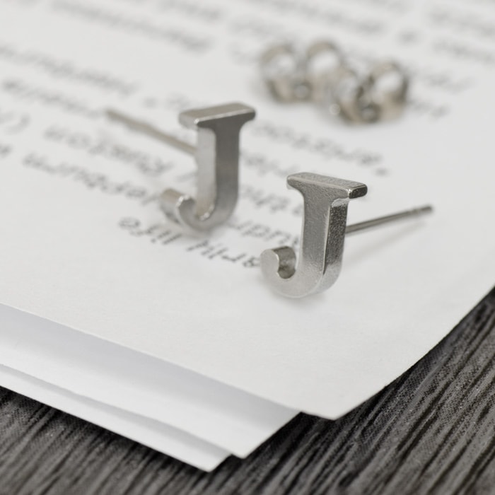 ステンレス製のちょうど良いサイズのアルファベット文字をモチーフにしたピアスです。 飽きの来ないデザインのフォント(書体)で、末永くお使い頂ける人気のイニシャルピアスです。