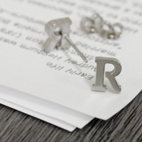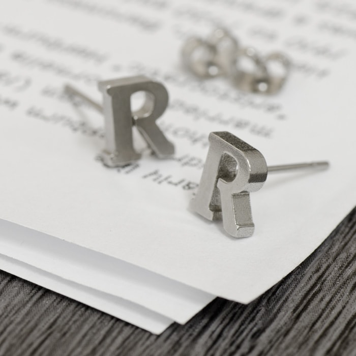 ステンレス > ピアス > スタッドタイプ > 【バラ売り/1個】 ピアス サージカルステンレス R イニシャルのピアス アルファベット 文字|医療用ステンレス アクセサリー レディース メンズ