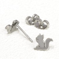 シンプルなリス(栗鼠)モチーフのステンレスピアス。女性にもおすすめです。