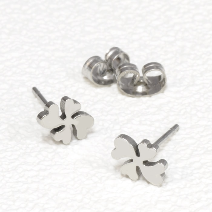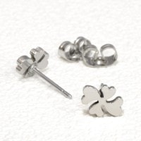 四つ葉(クローバー)モチーフのステンレスピアス。女性にもおすすめです。※当商品は1個づつ販売の「バラ売り商品」です、ペアではございません。