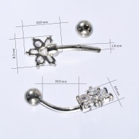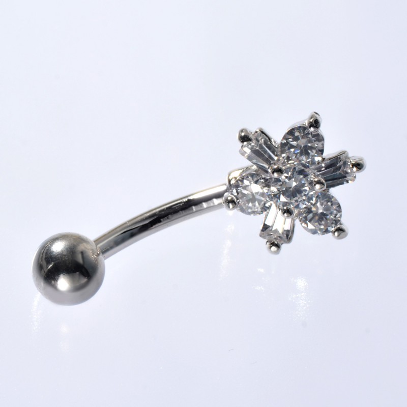 【バラ売り/1個】 ボディピアス サージカルステンレス バナナバーベル キュービックジルコニアとフラワーモチーフのボディピアス 14ゲージ 内径10.0mm クリア 花 ハナ|軟骨 医療用ステンレス アクセサリー レディース メンズ