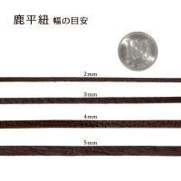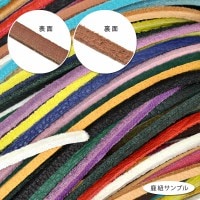 表面はすべすべななめし加工、裏側はスウェードのような柔らかい肌触りの起毛加工が施されたシカ革の平紐(ディアスキン)。鹿の革は丈夫なのに柔らかく肌触りが良いので、高級品とされています。ネックレスやペンダントトップなどの他、アイデア次第で様々な用途にお使い頂けます。