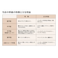 こちらの紐の裏側には、天然由来の糊やワックスにより革本来の自然な風合いを残しながらもしなやかで丈夫な被膜を形成させ、細かい繊維屑がポロポロと抜け落ちることを長期的に軽減する「毛羽立ち防止加工」が施されております。※天然の素材である為、長さが表記より若干短かい(或いは長い)、厚さが一定でない、細かな傷等がある場合がございます、予めご了承下さい。