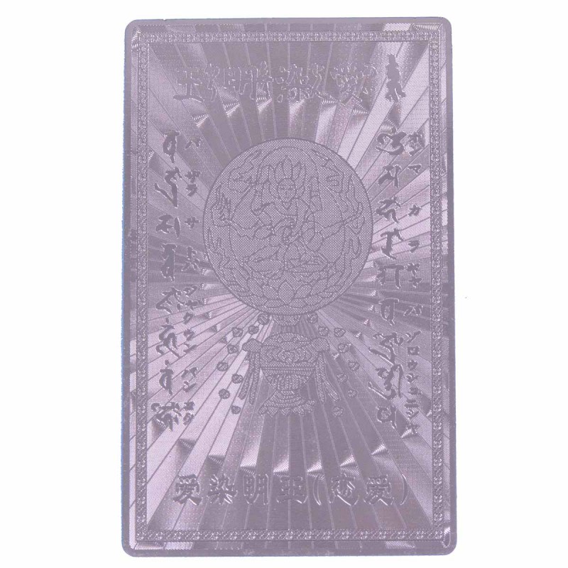 「結婚成就・恋愛成就・家庭円満」等ご縁結びをつかさどる愛染明王が彫られた開運護符カードです。明王のひとつである愛染明王は、古くから信仰され、愛欲や欲望、執着などの煩悩を悟りに変え導いてくれる力を持つといわれています。お財布やカードケースに収まるサイズで肌身離さず持ち歩けます。