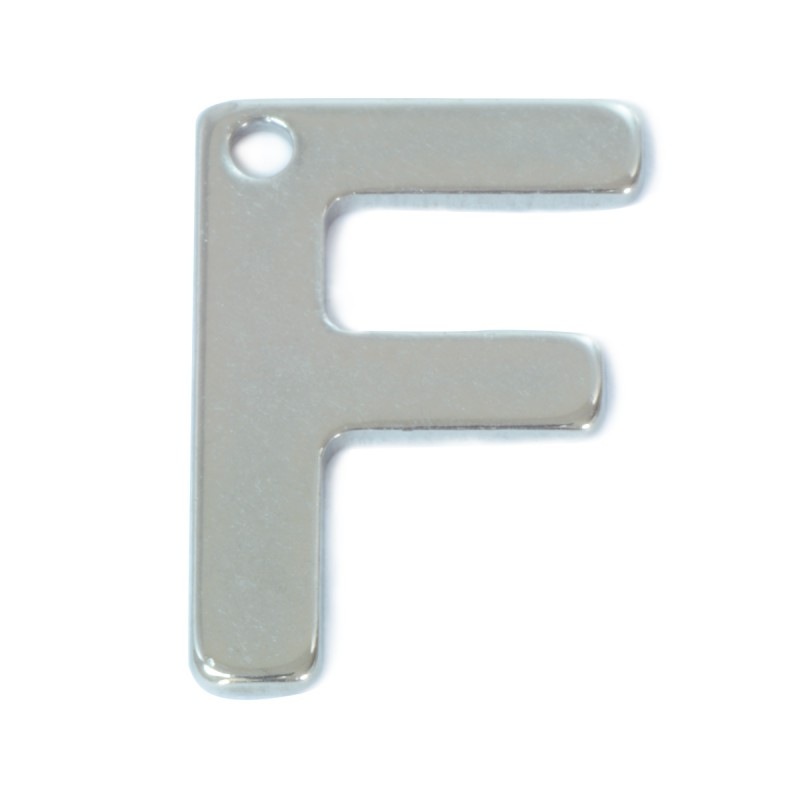 パーツ > ステンレス > チャーム > 【1個売り】 チャームパーツ サージカルステンレス F イニシャルプレートチャーム 穴開き アルファベット 文字|手芸用品 金具 飾り パーツ 部品 医療用ステンレス