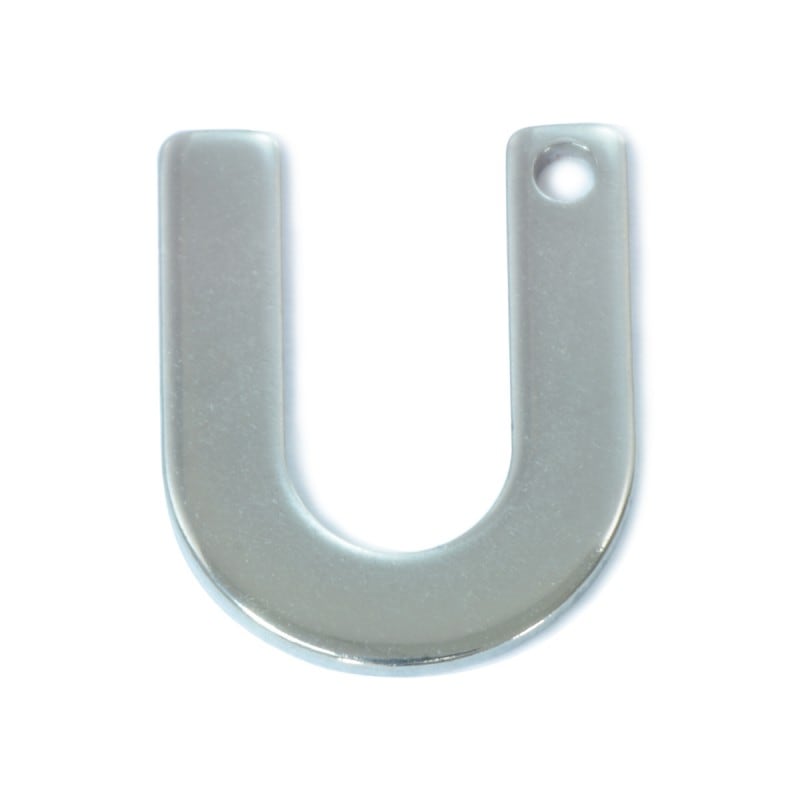 パーツ > ステンレス > チャーム > 【1個売り】 チャームパーツ サージカルステンレス U イニシャルプレートチャーム 穴開き アルファベット 文字|手芸用品 金具 飾り パーツ 部品 医療用ステンレス