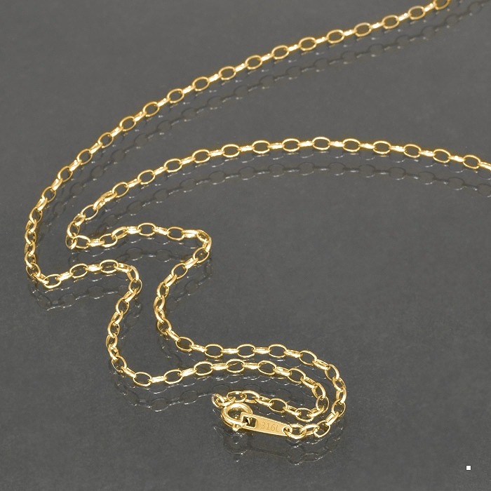 オーバルロールチェーンは、表面が丸く膨らんだ甲丸状の輪を連ねたチェーン。コマの間隔が広い為、軽く優しい印象が漂うネックレスです。